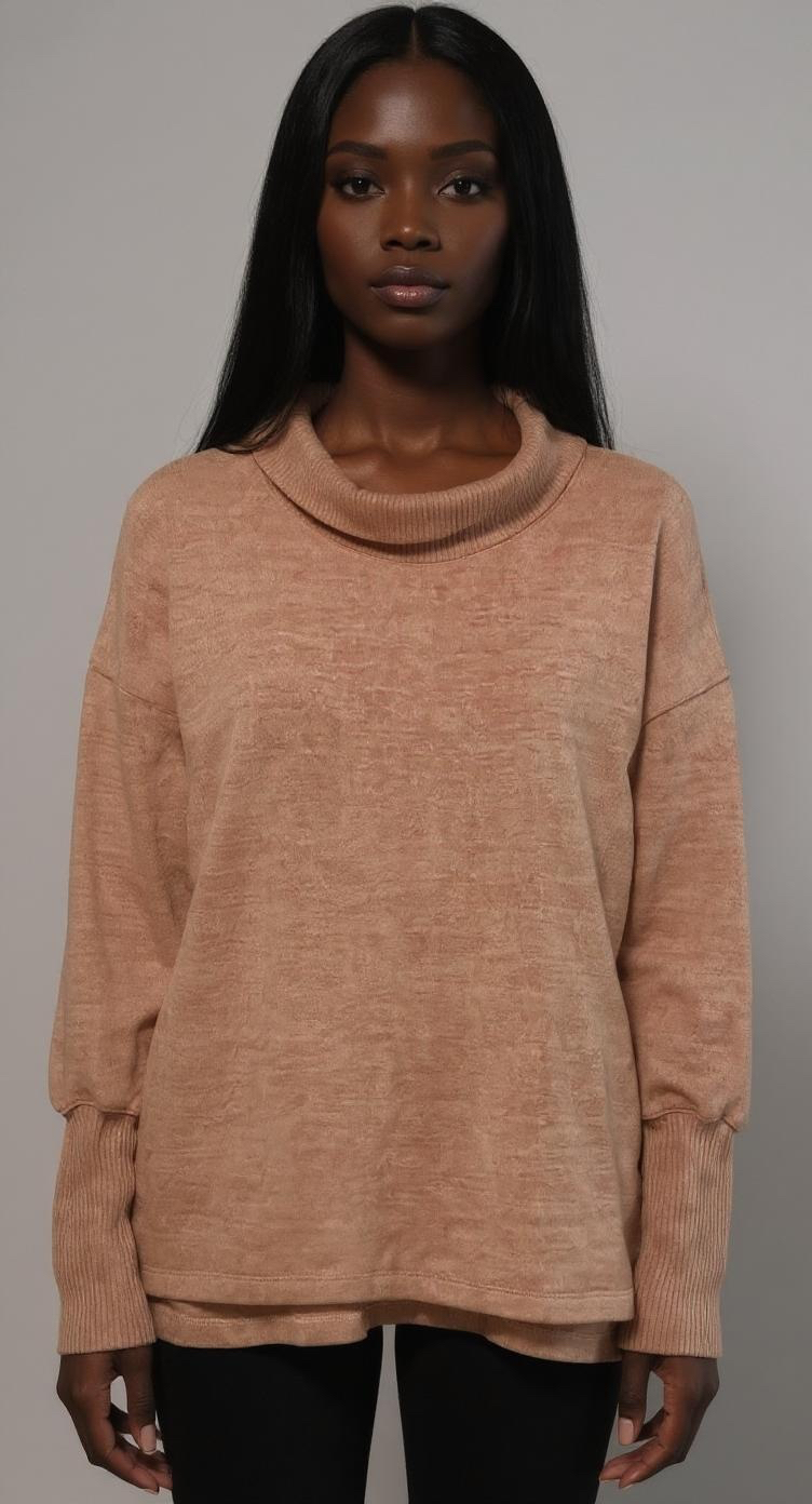 Women’s Soft Sherbet Flannel Turtle Neck Juliette Sleeve Knit Sweater Top