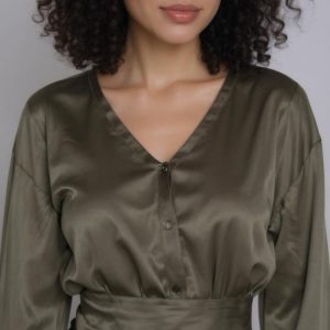 Women’s 76% Rayon, 20% Polyester, 4% Spandex, Mauve Ruffle Shoulder Detail Long Sleeve Top