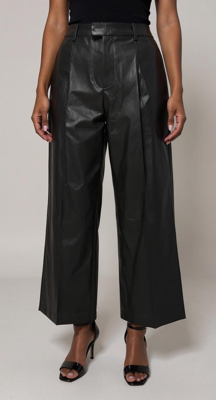 Women’s 50 % Pu, 50% Polyester, Vegan leather Pintuck Ankle pants